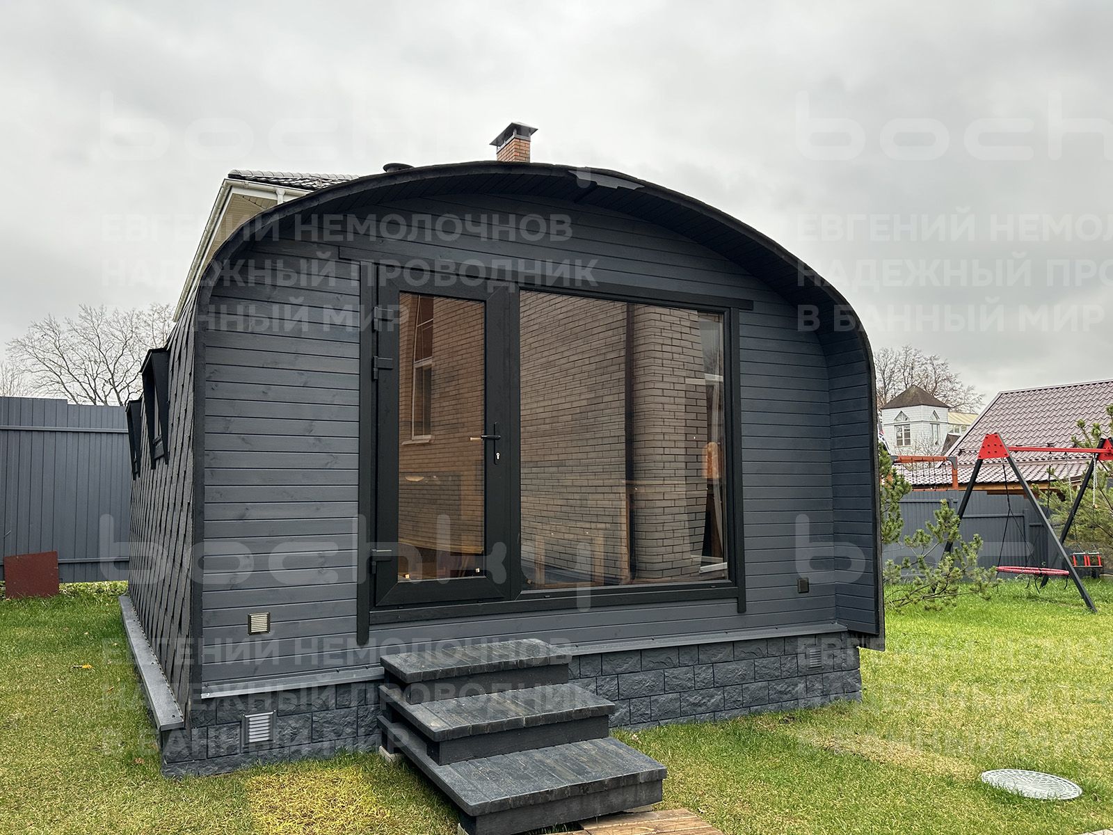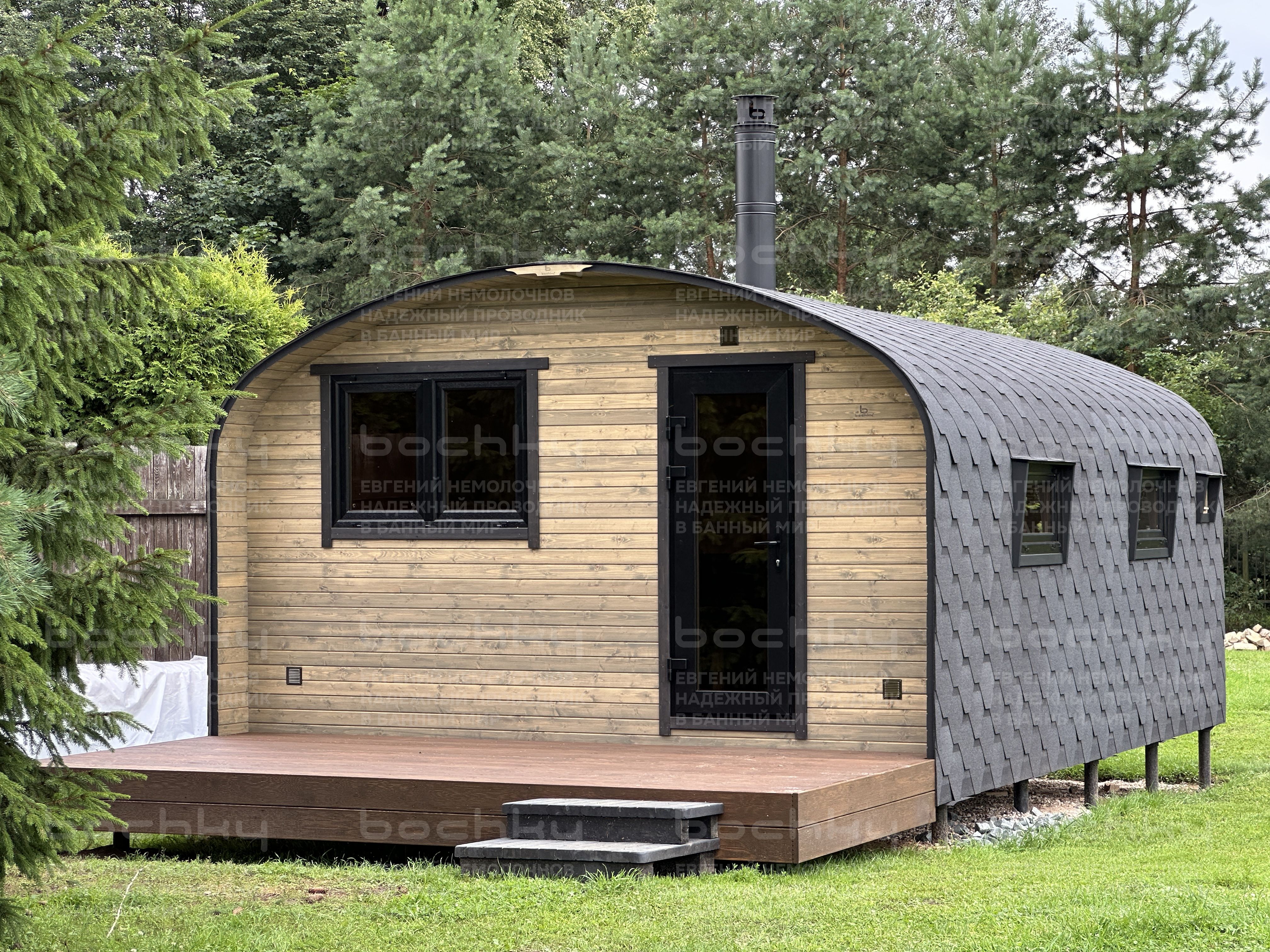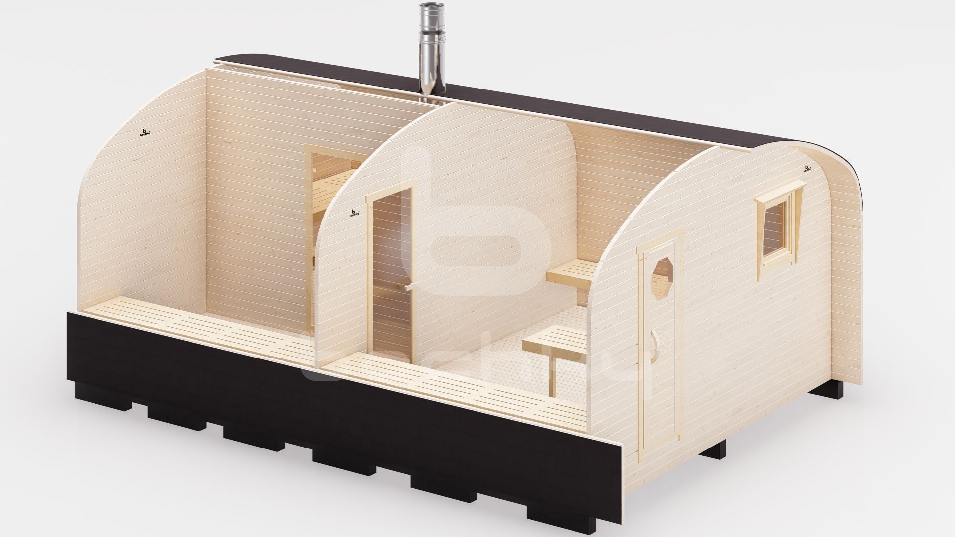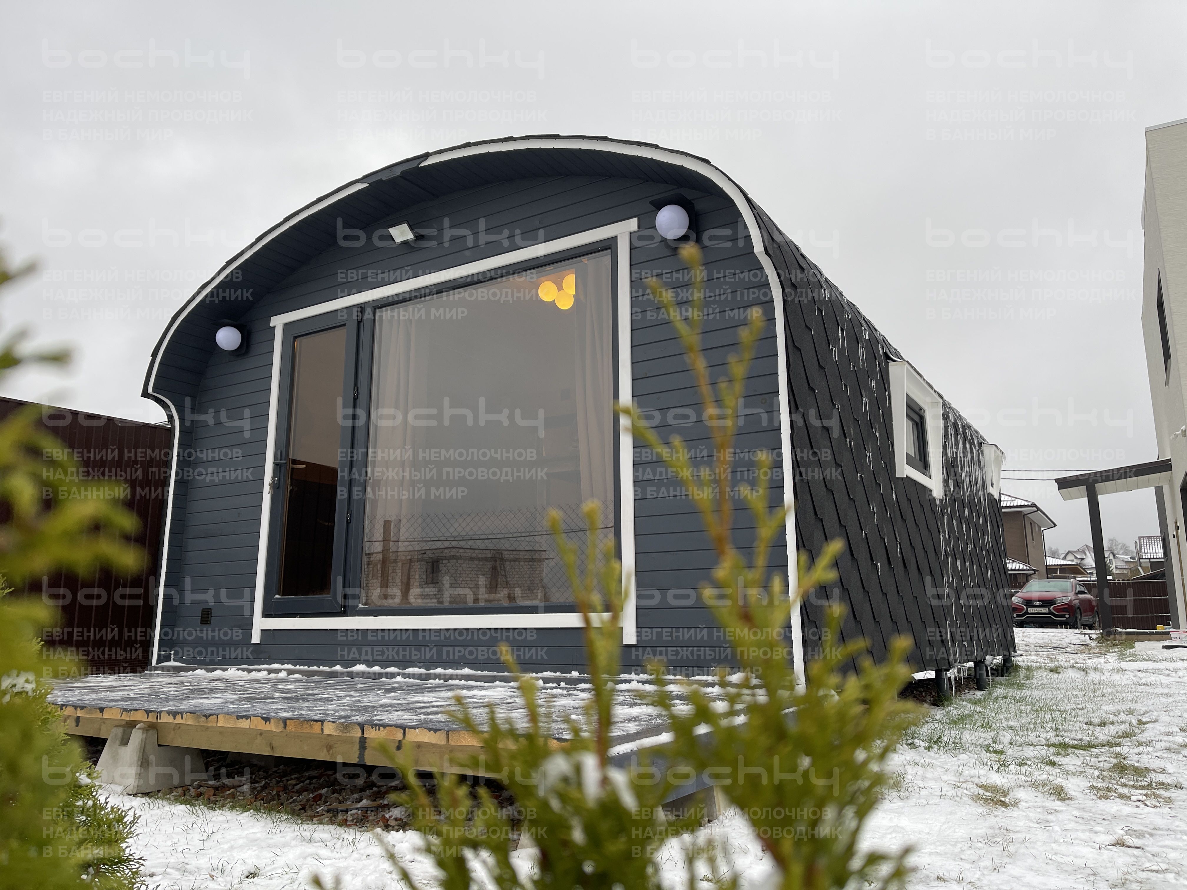 Баня Квадро-Хаус «4×2» имеет два больших помещения и с легкостью может разместить компанию. За счет формы баня обеспечит быстрый прогрев помещений даже зимой. Баня устанавливается краном-манипулятором в собранном виде или собирается на участке за два дня.