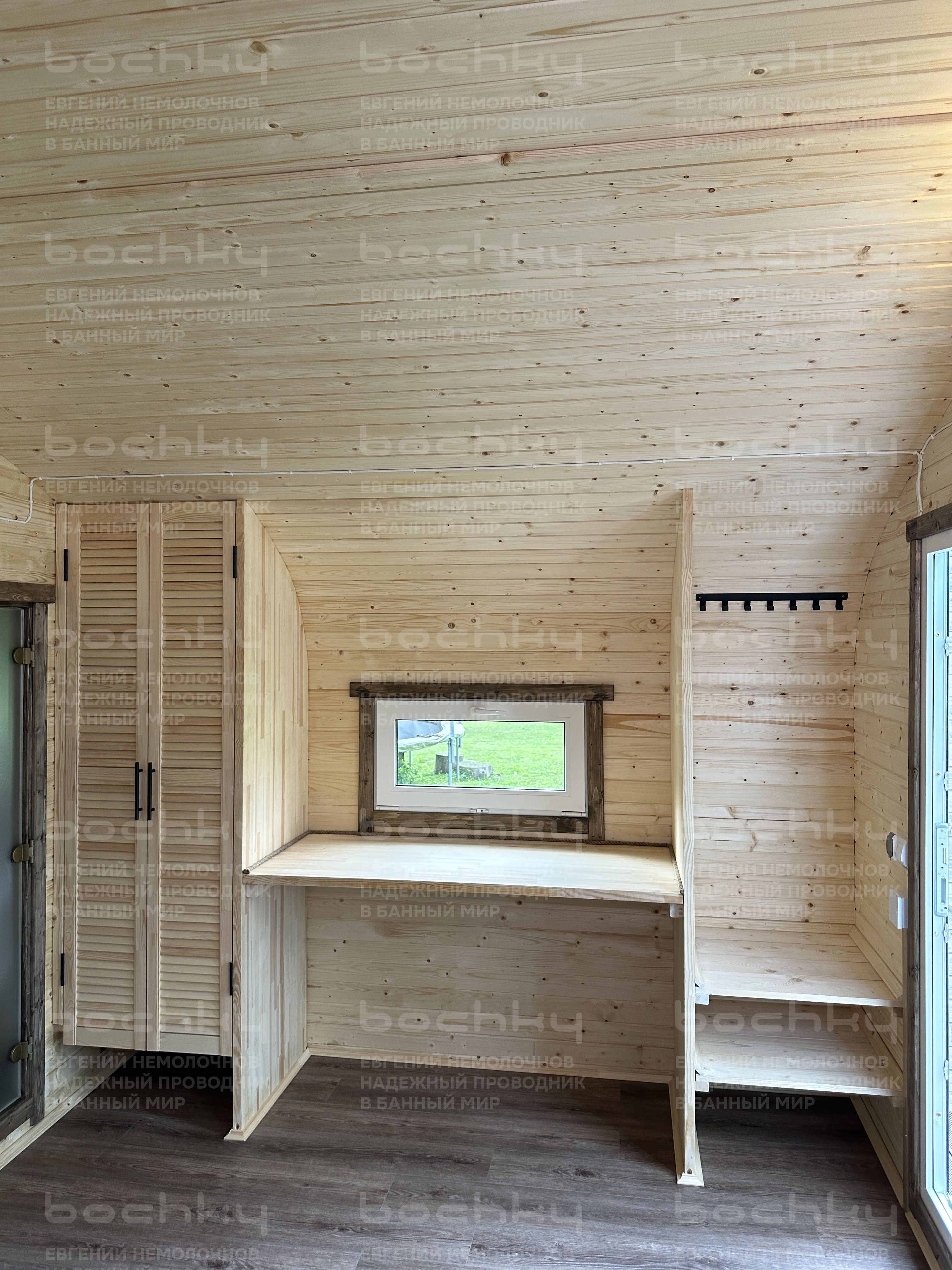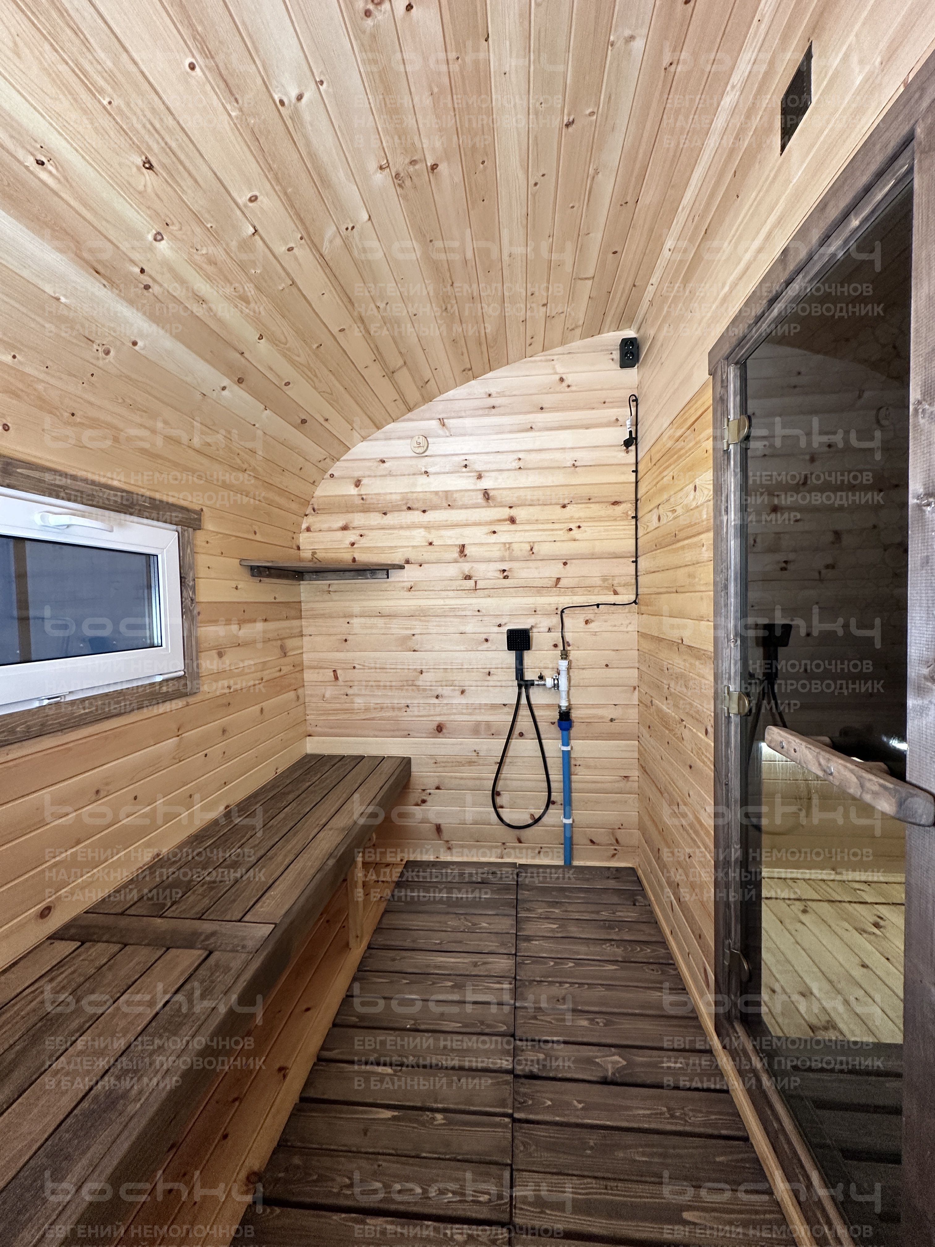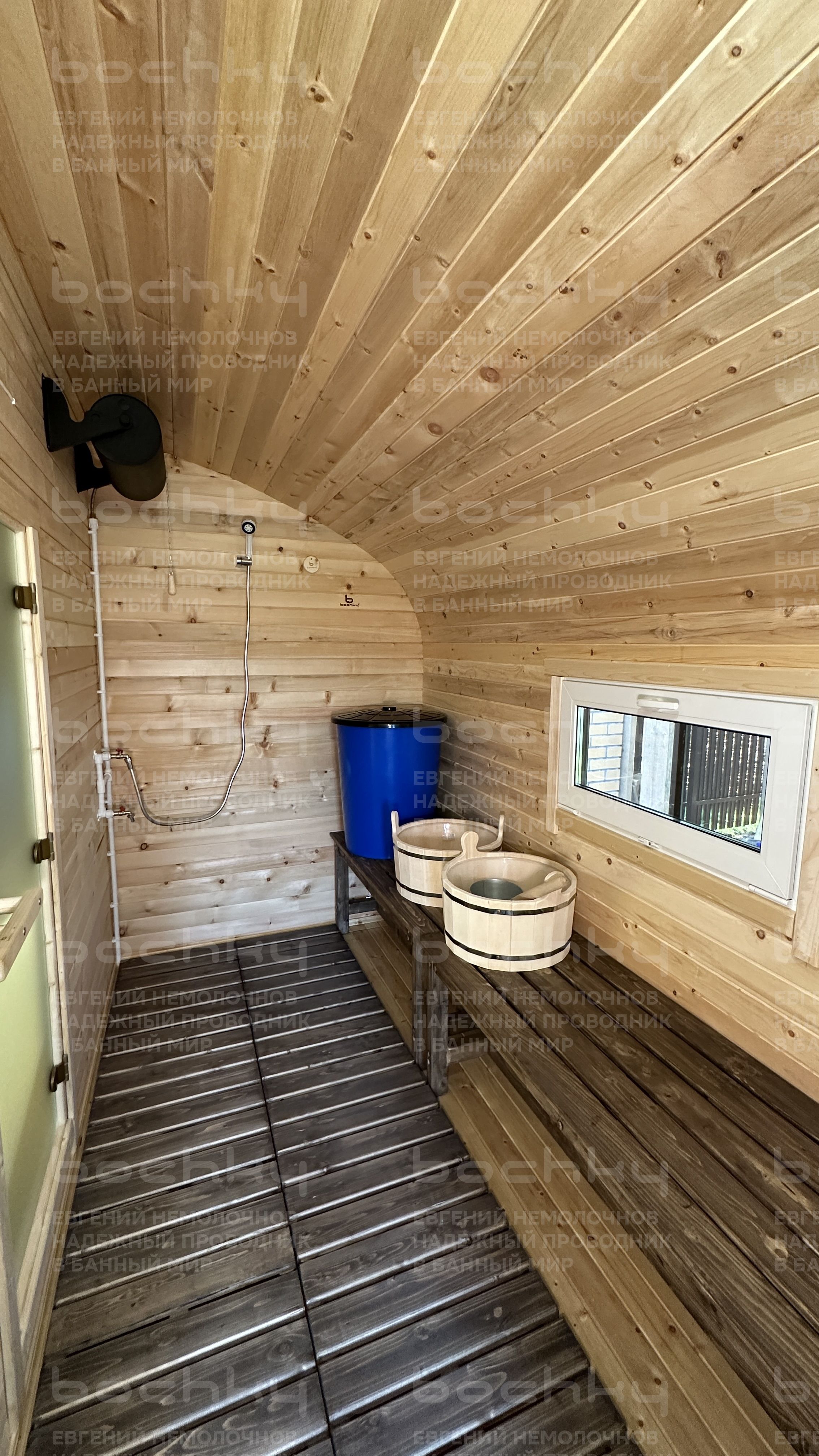 - Проливные полы на лагах с уклоном в сторону от печи из доски с возможностью замены