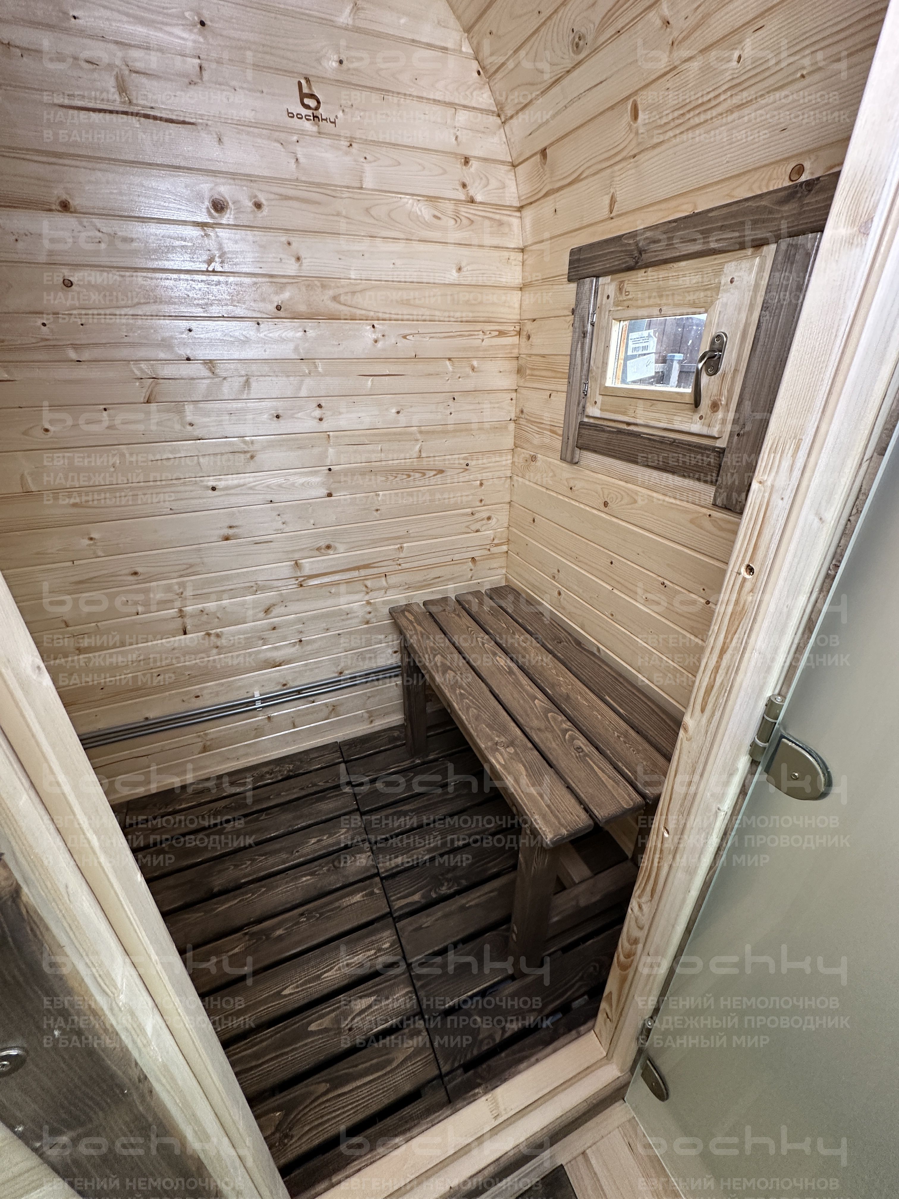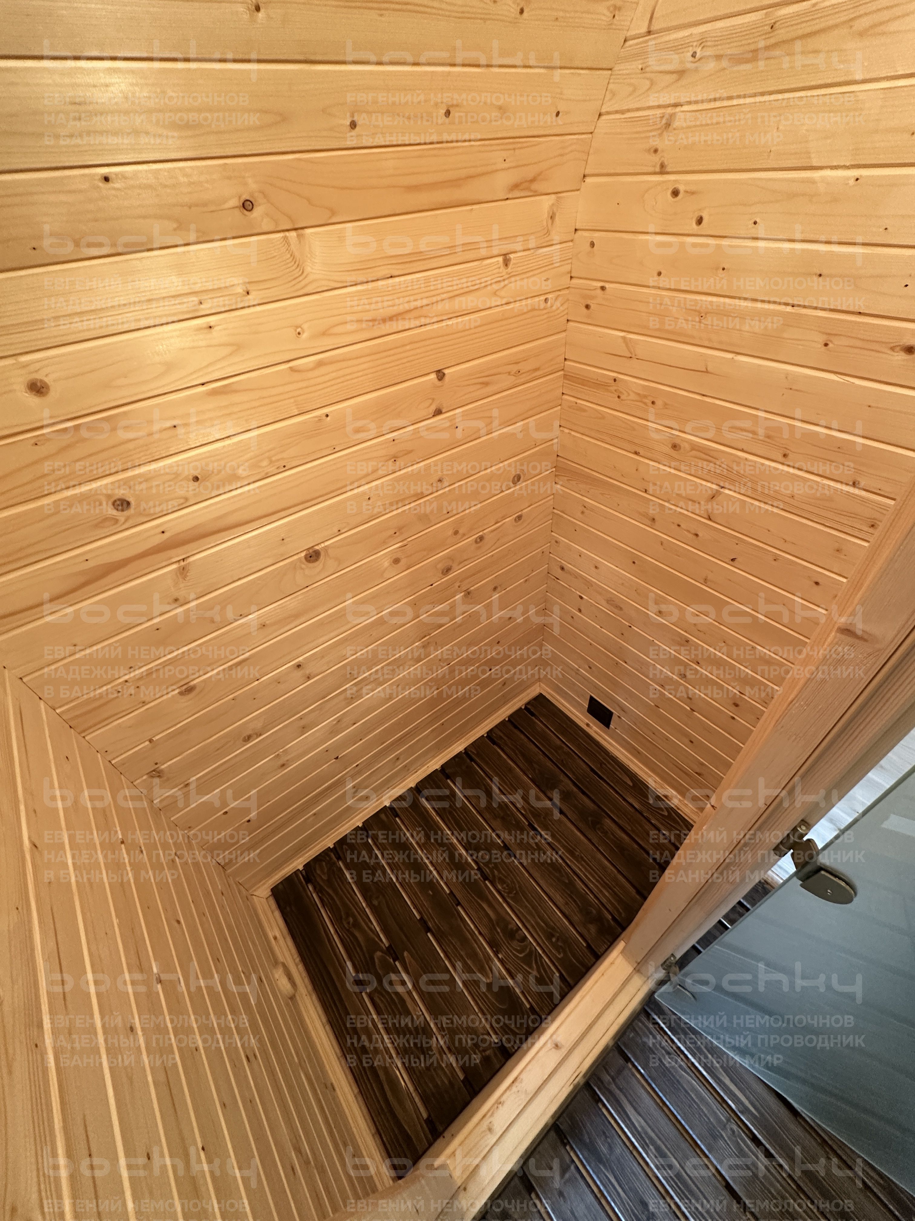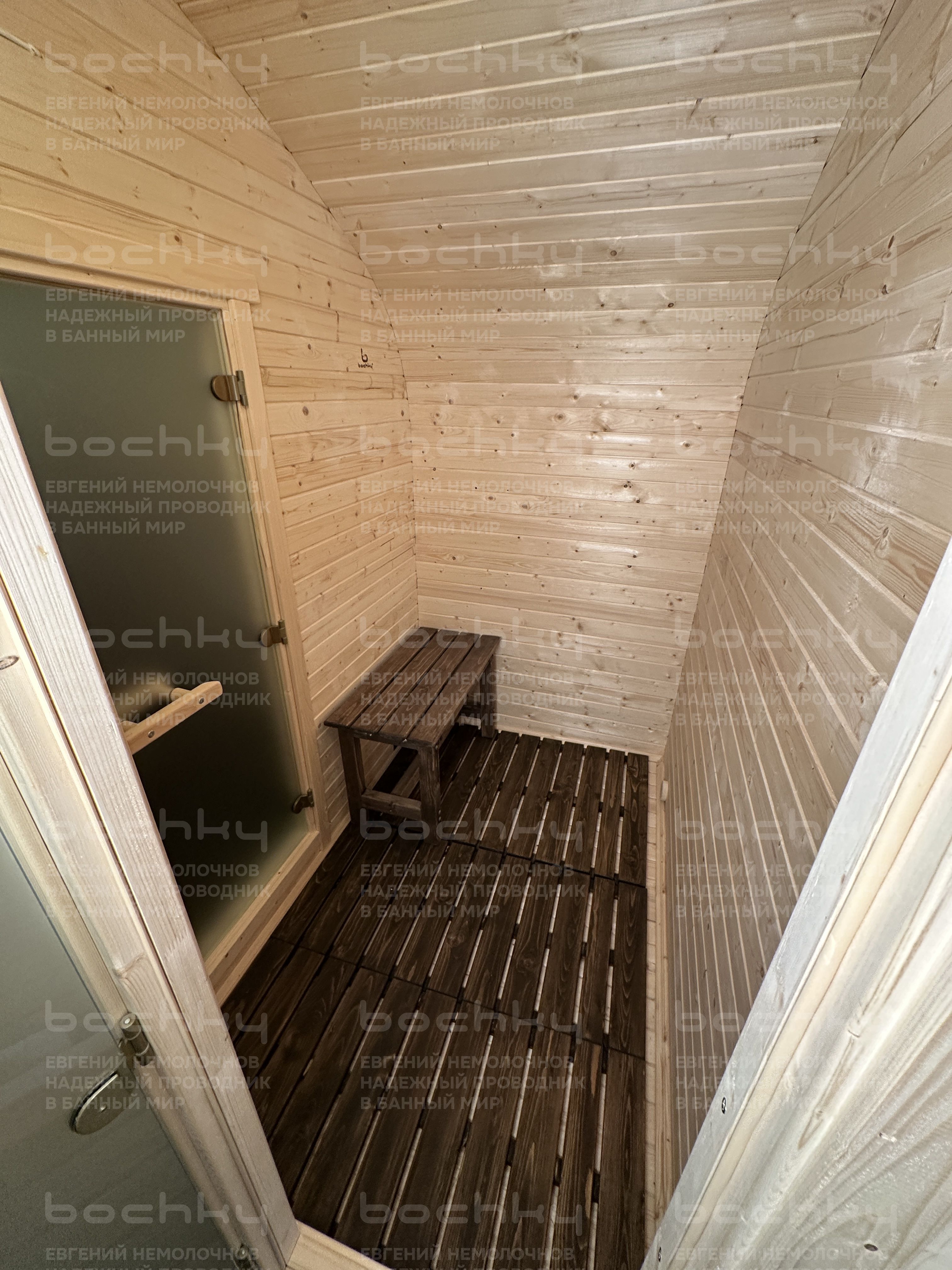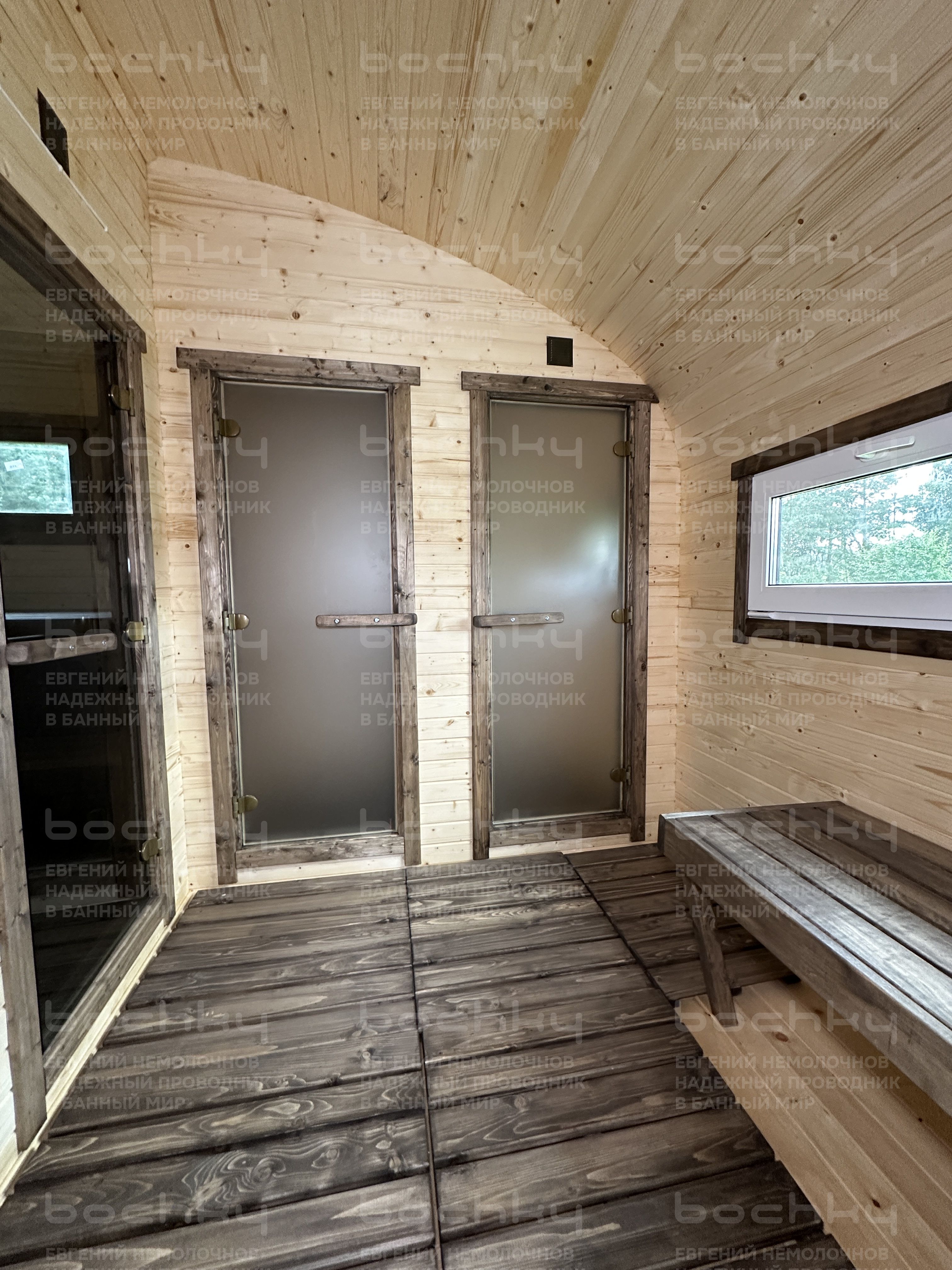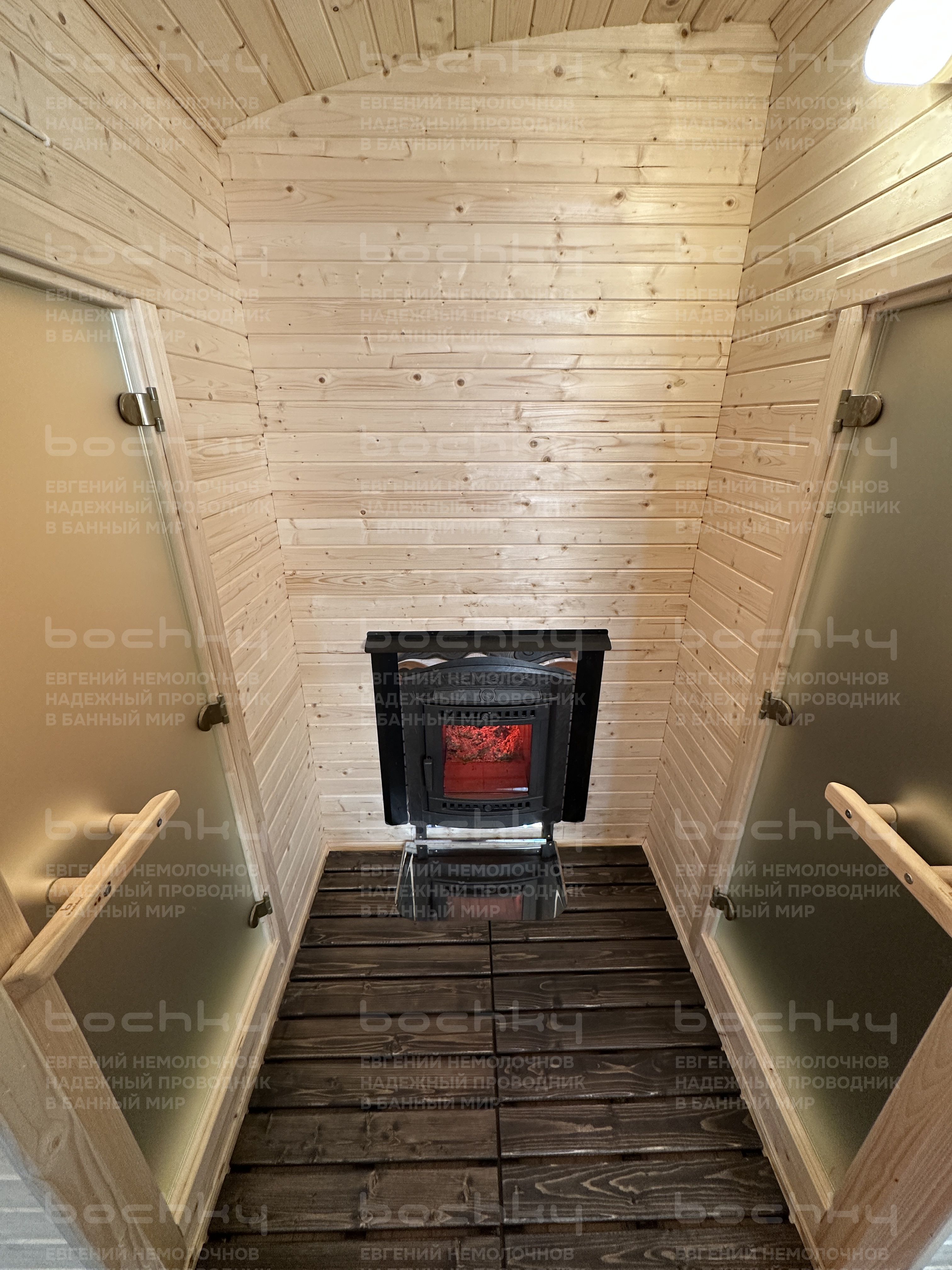 - Стеклянная тонированная дверь в парилку