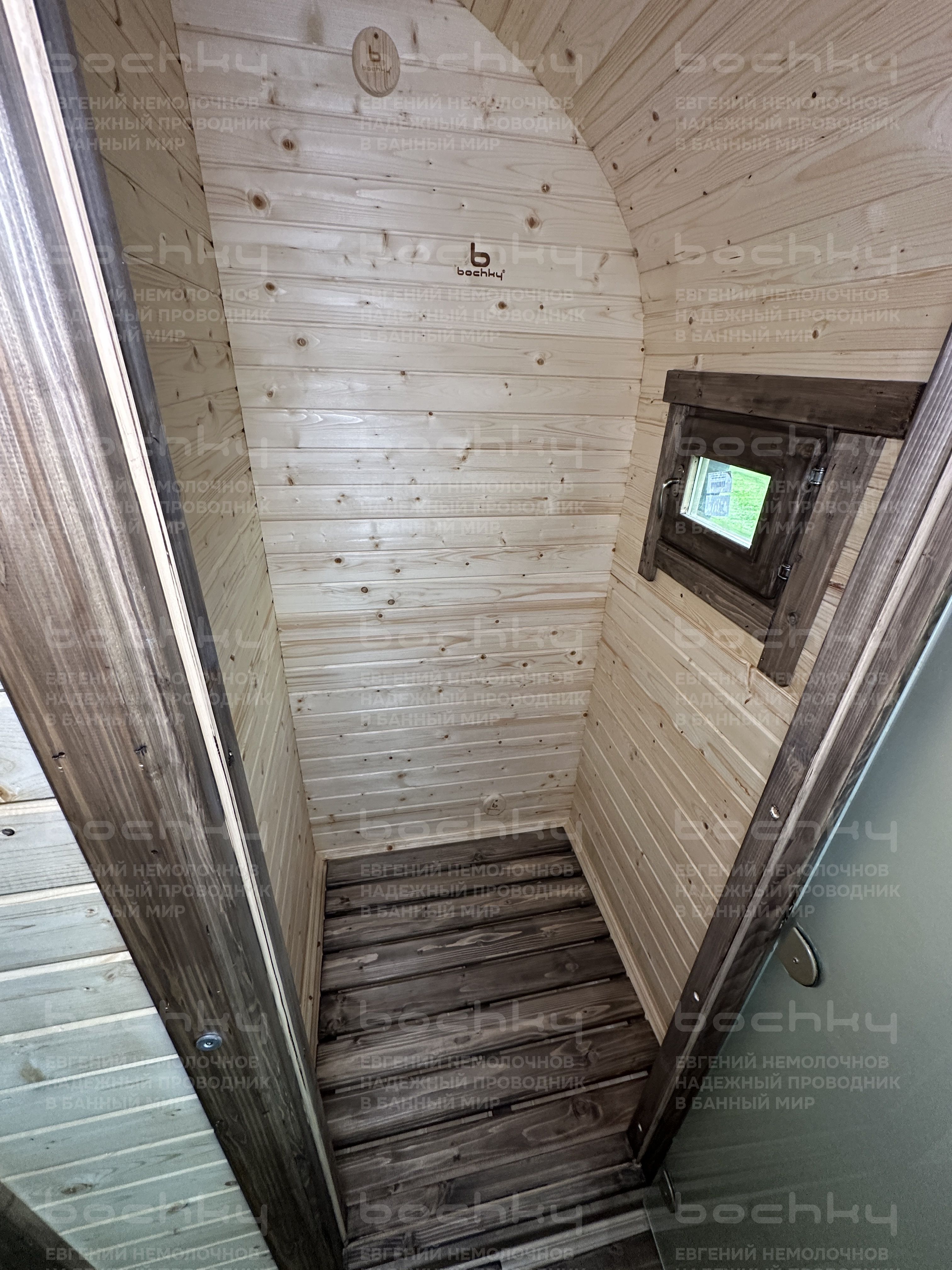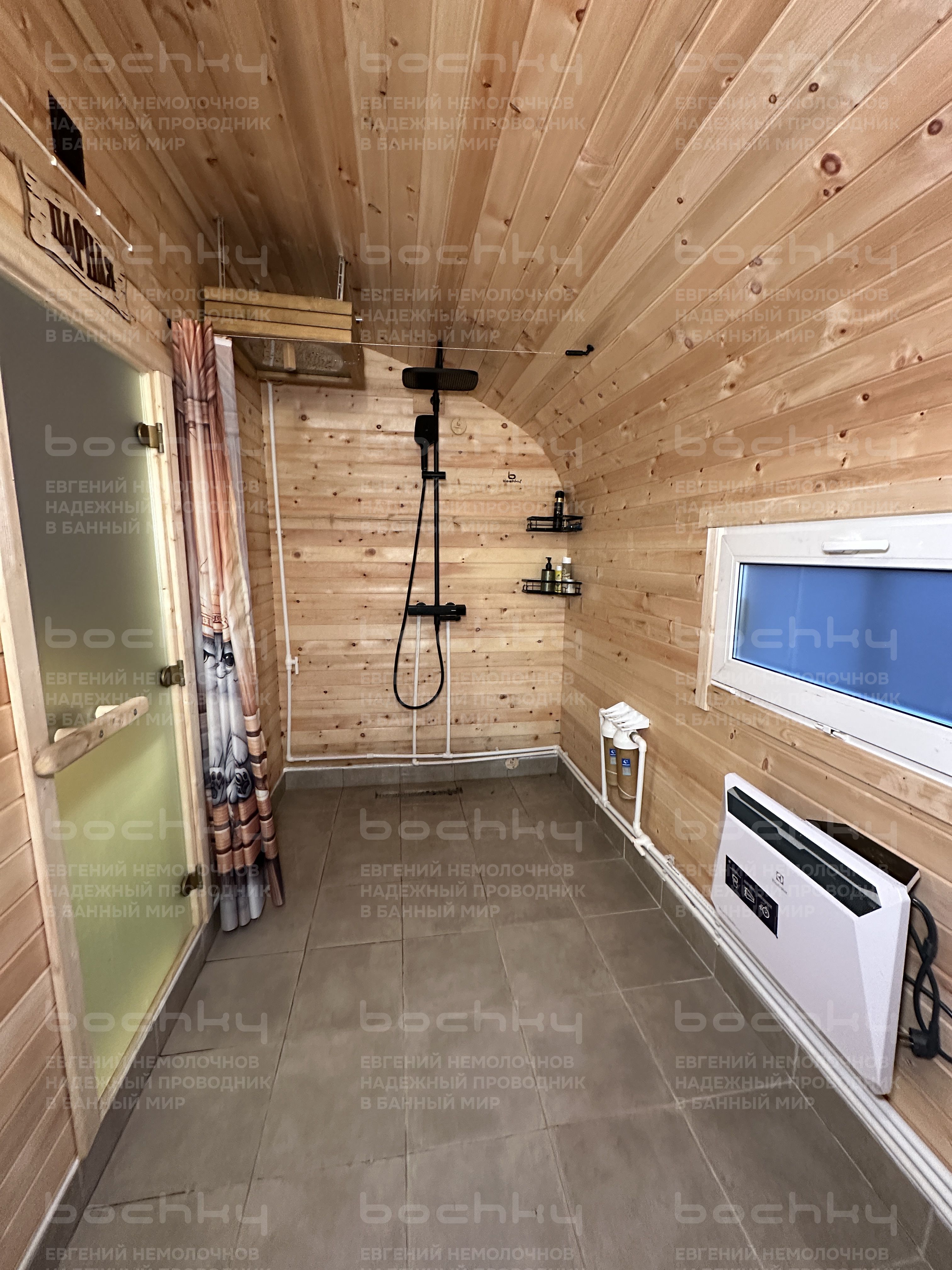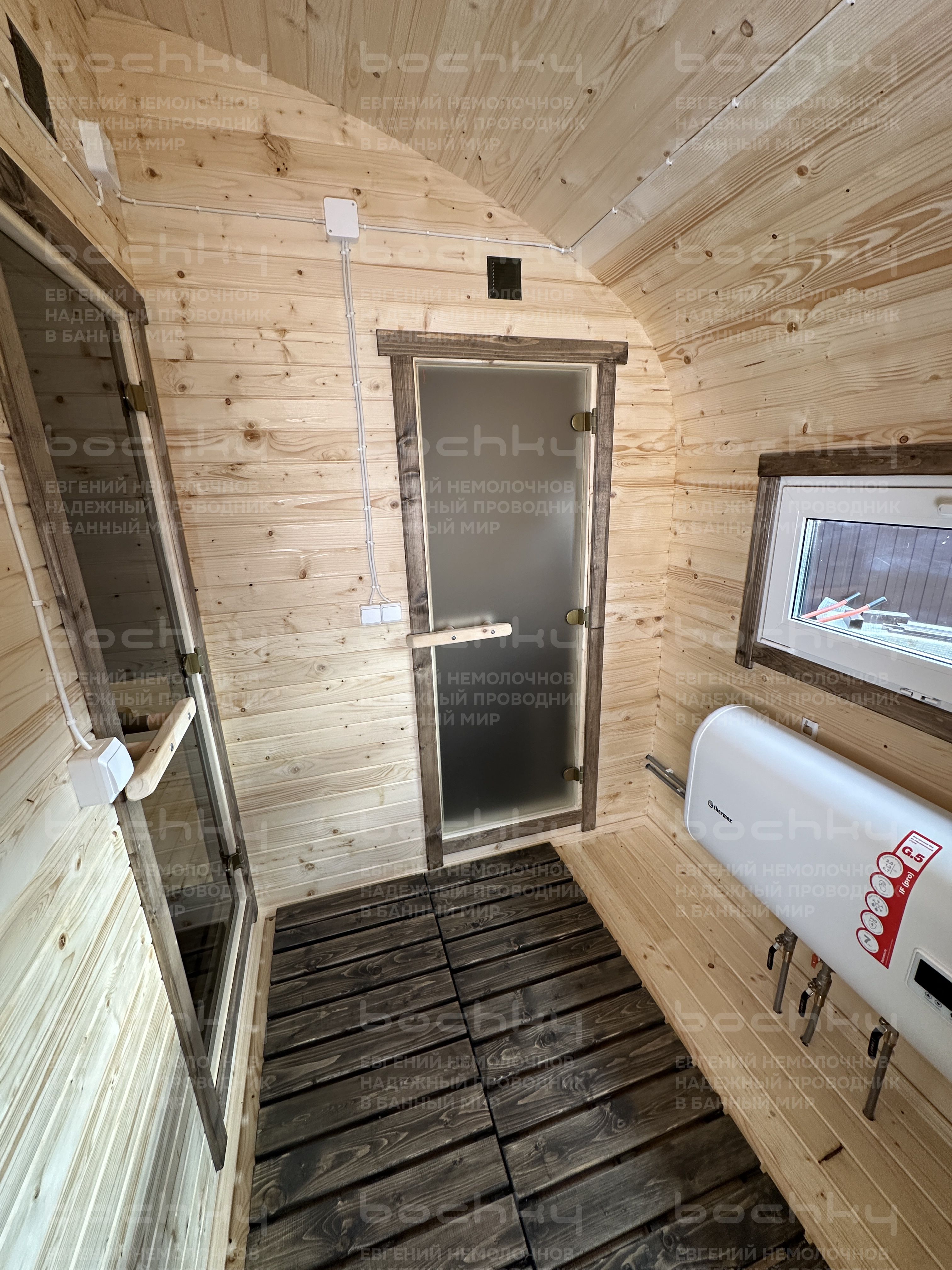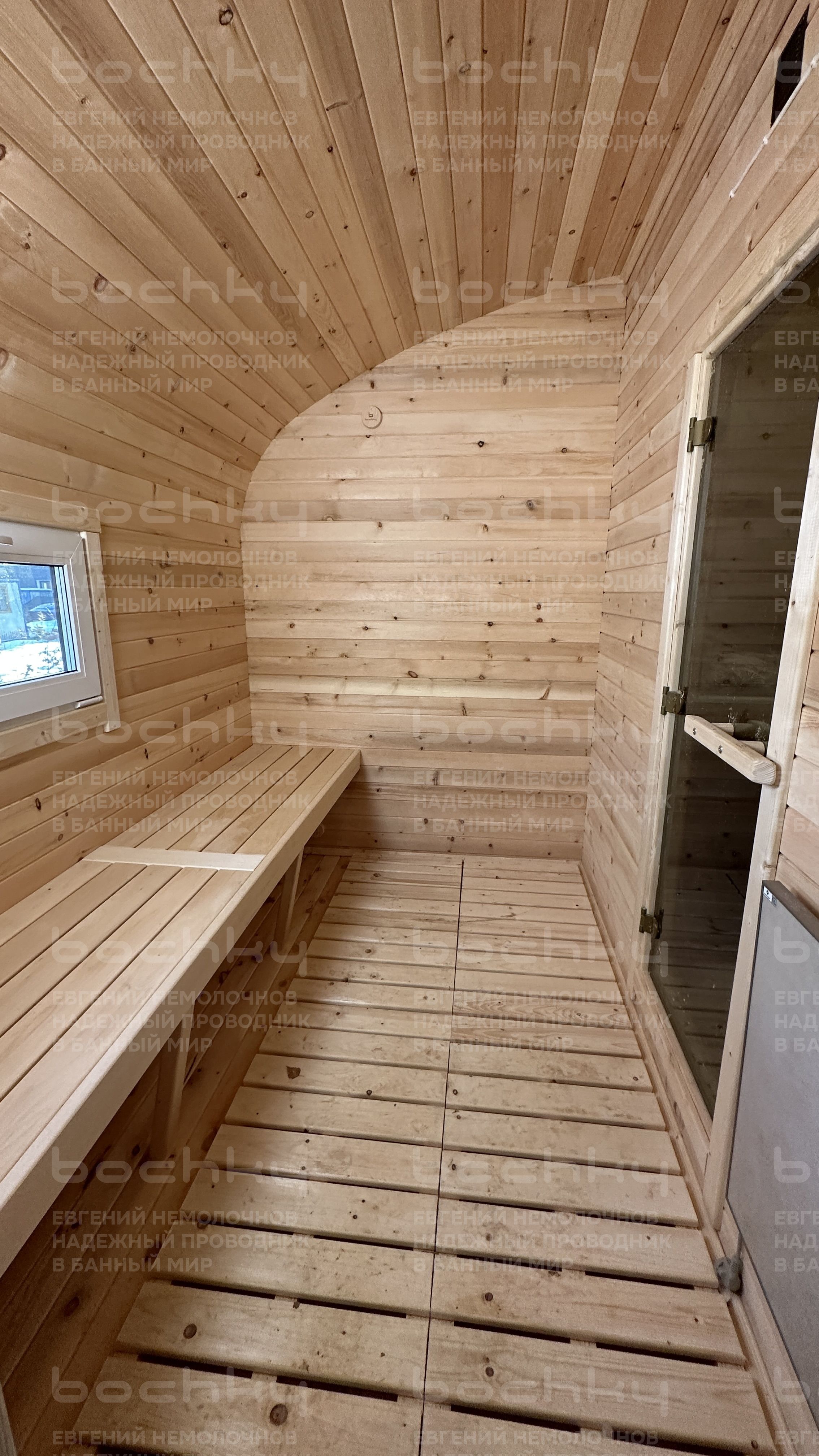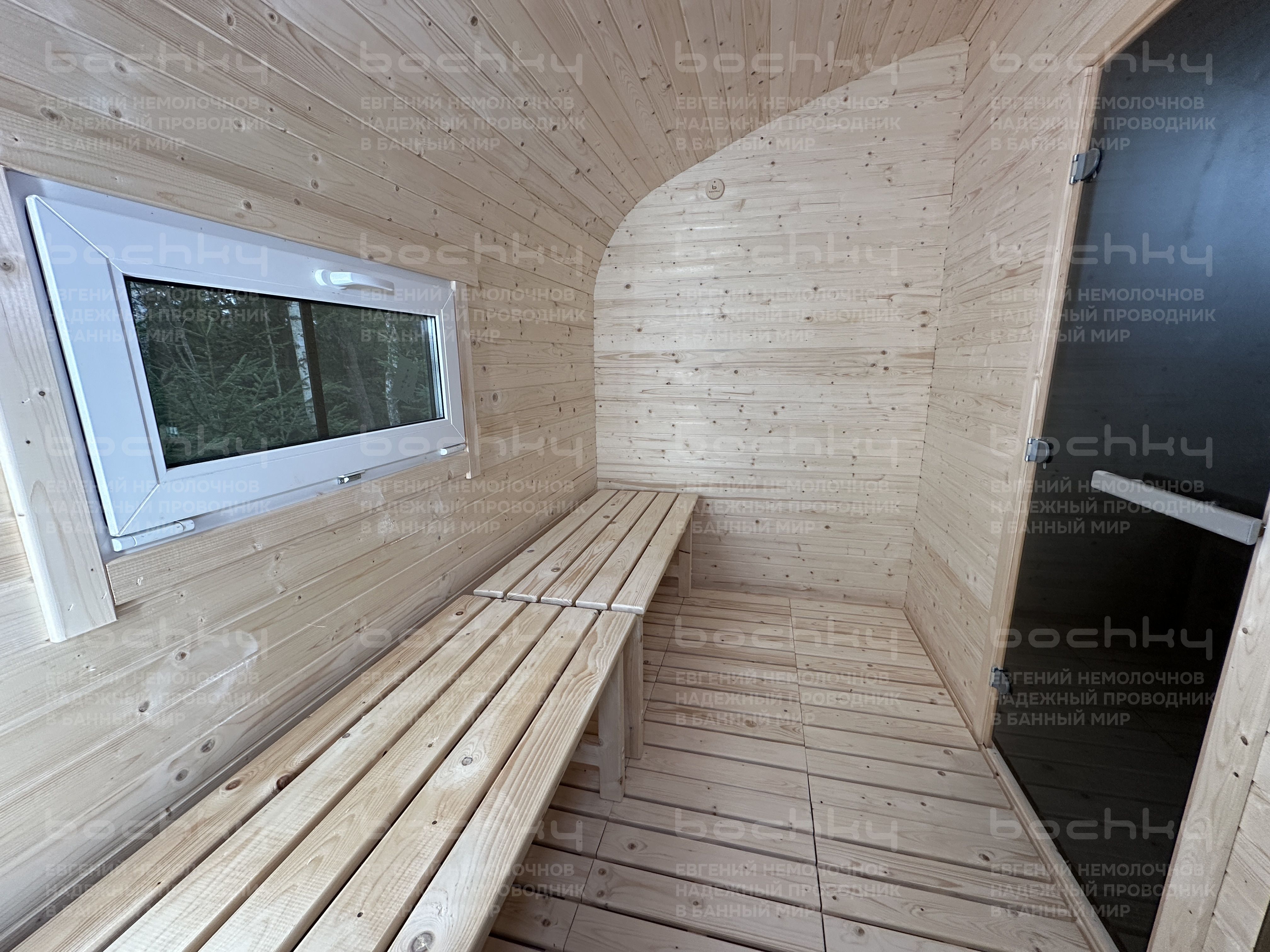- Стеклянная тонированная дверь в парилку