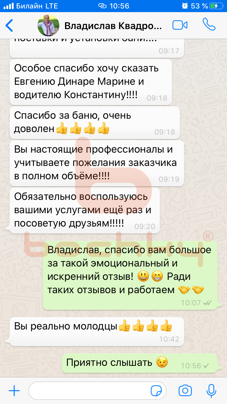 Честные и реальные отзывы о проделанной работе и установленных банях