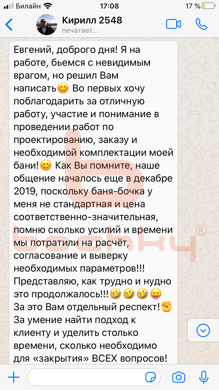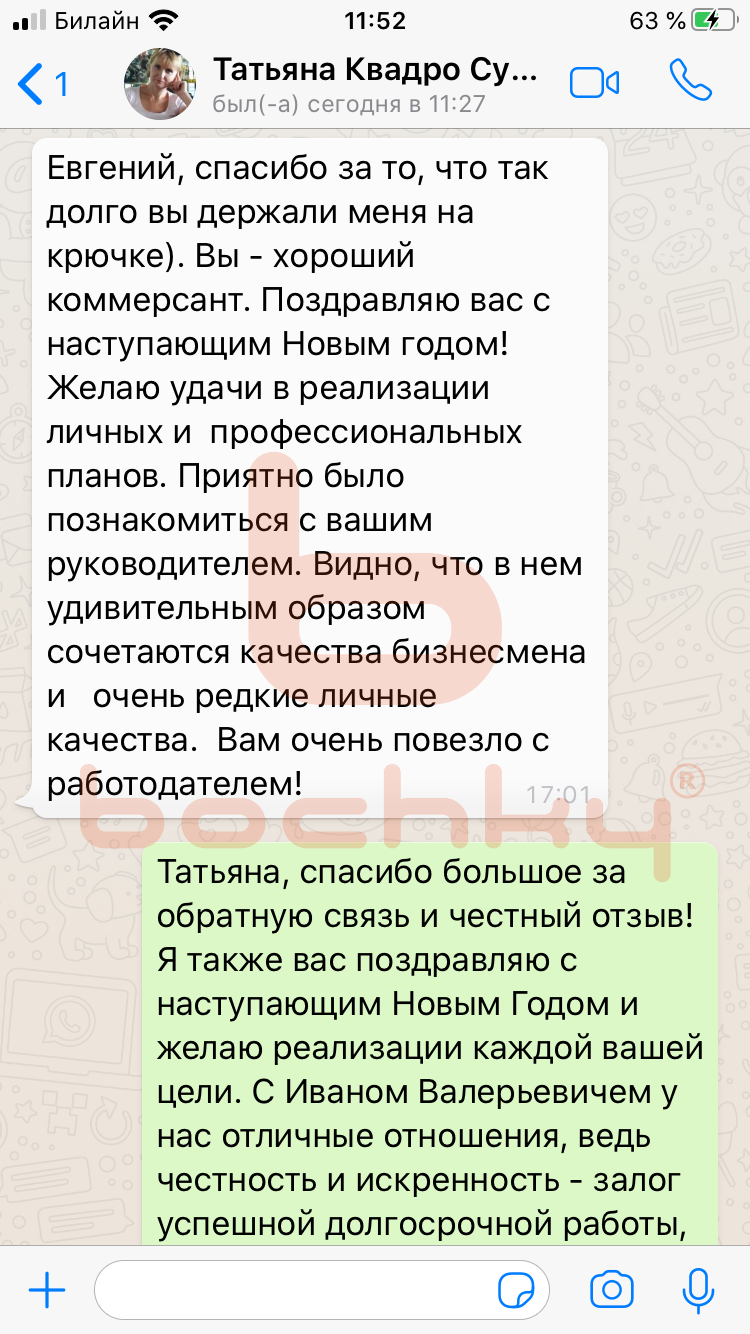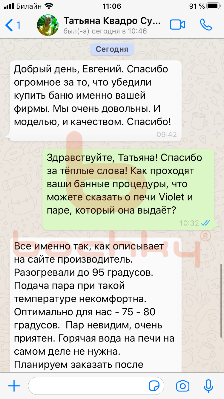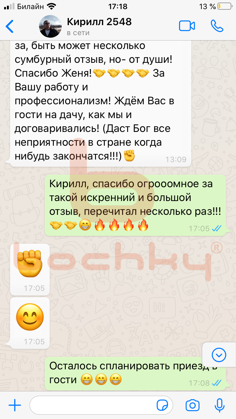 Вот что пишут клиенты Bochky в личной переписке в WhatsApp