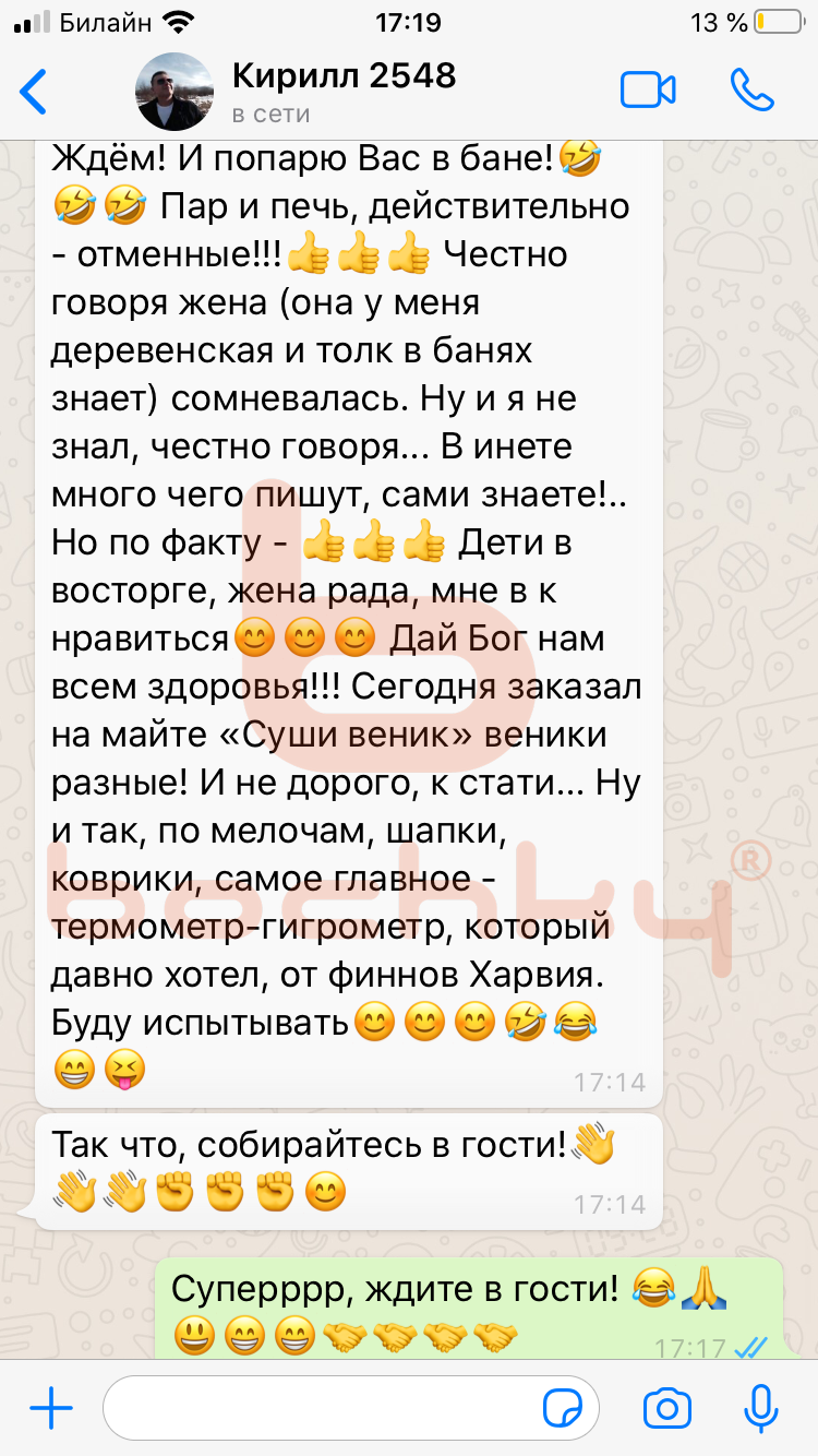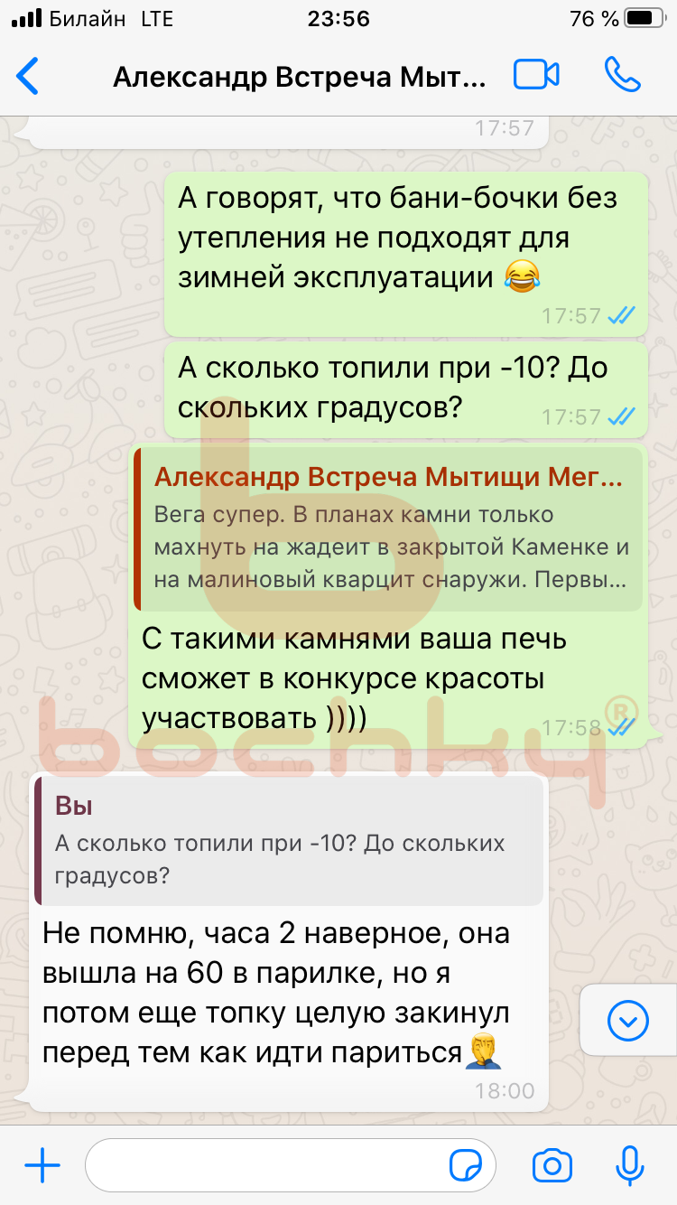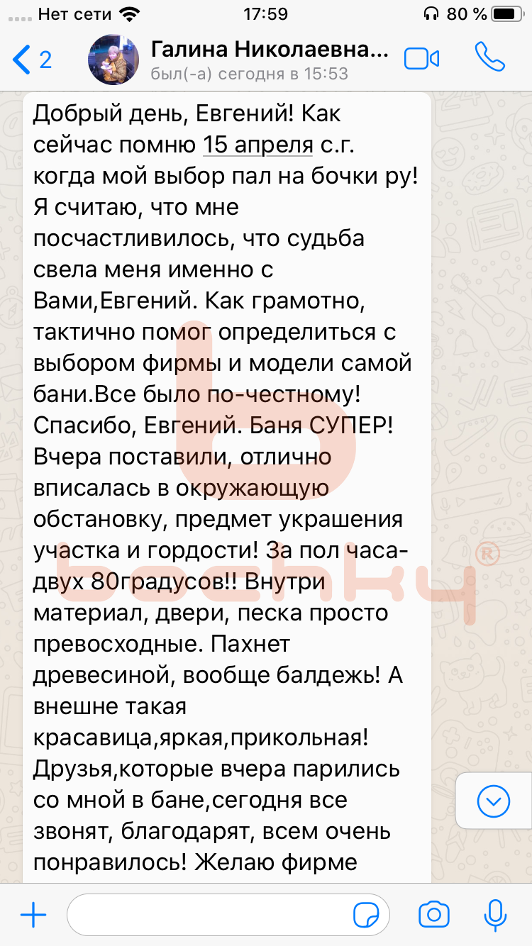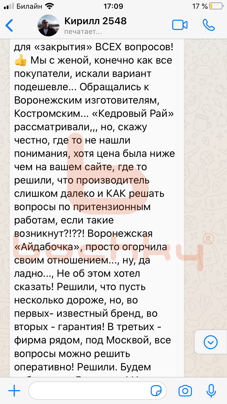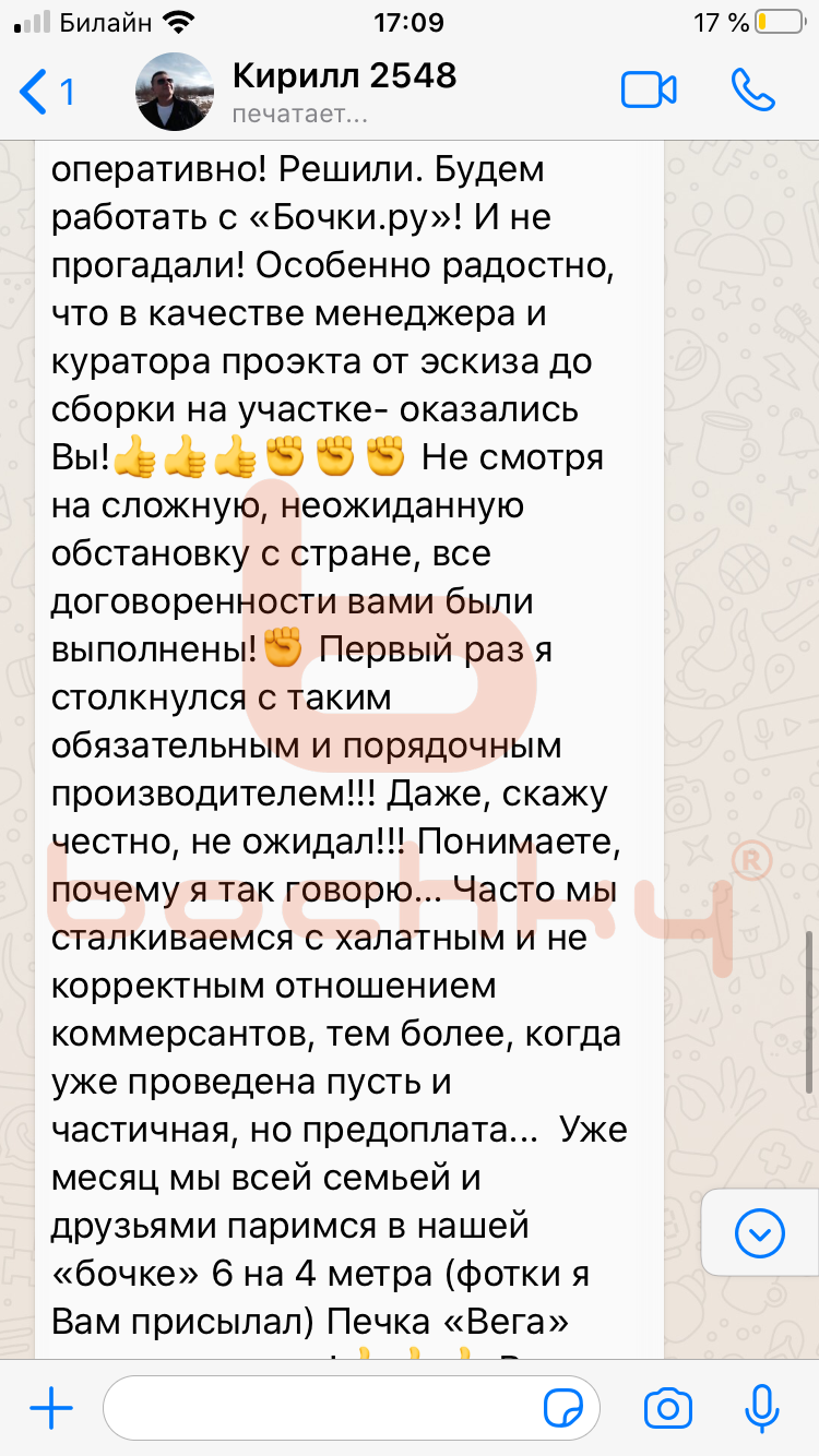 Вот что пишут клиенты Bochky в личной переписке в WhatsApp