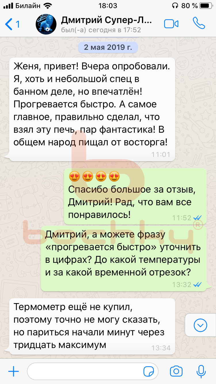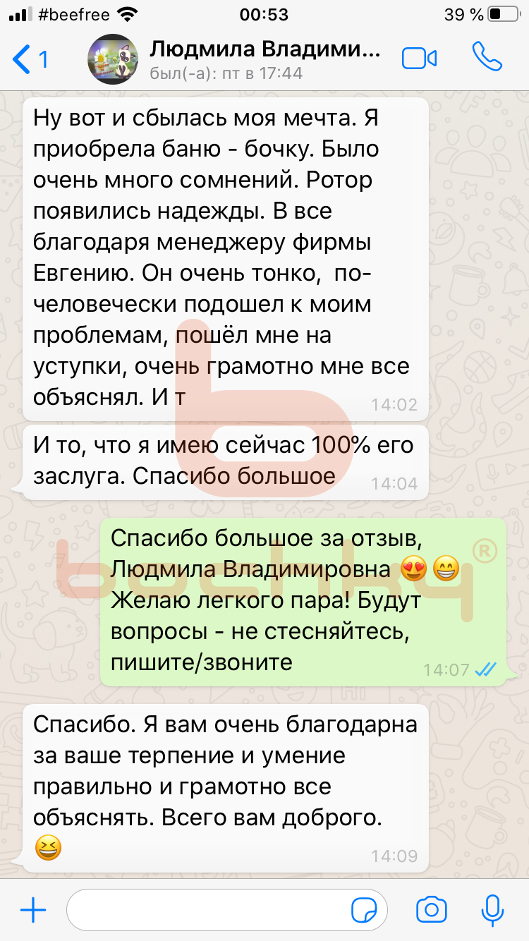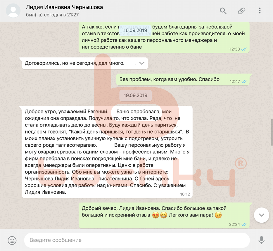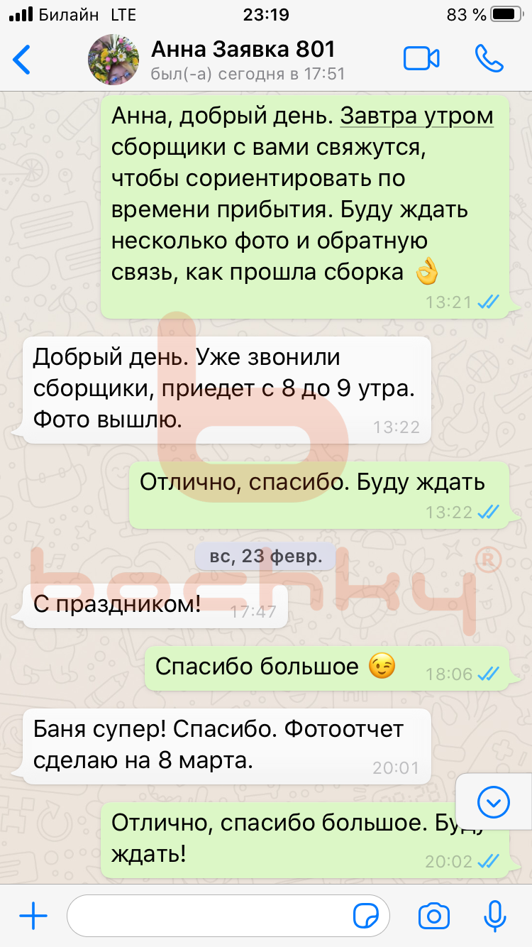Вот что пишут клиенты Bochky в личной переписке в WhatsApp