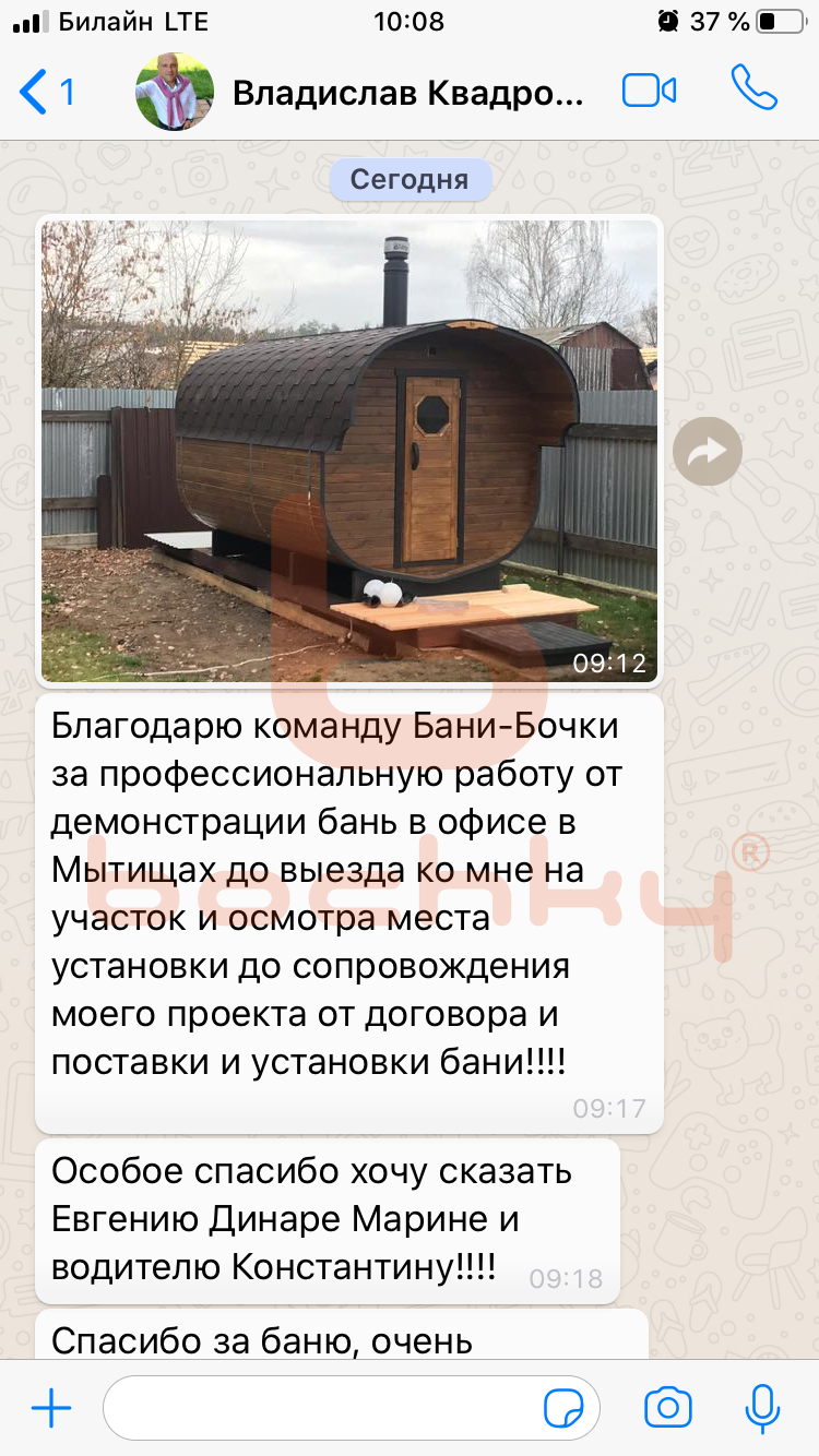 покупатель бани-бочки.